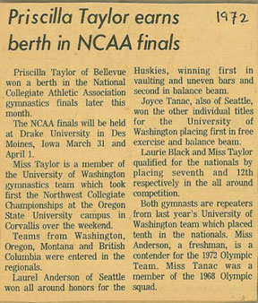 Priscilla Taylor Hickey, Seattle YMCA, UW 1971, 1972